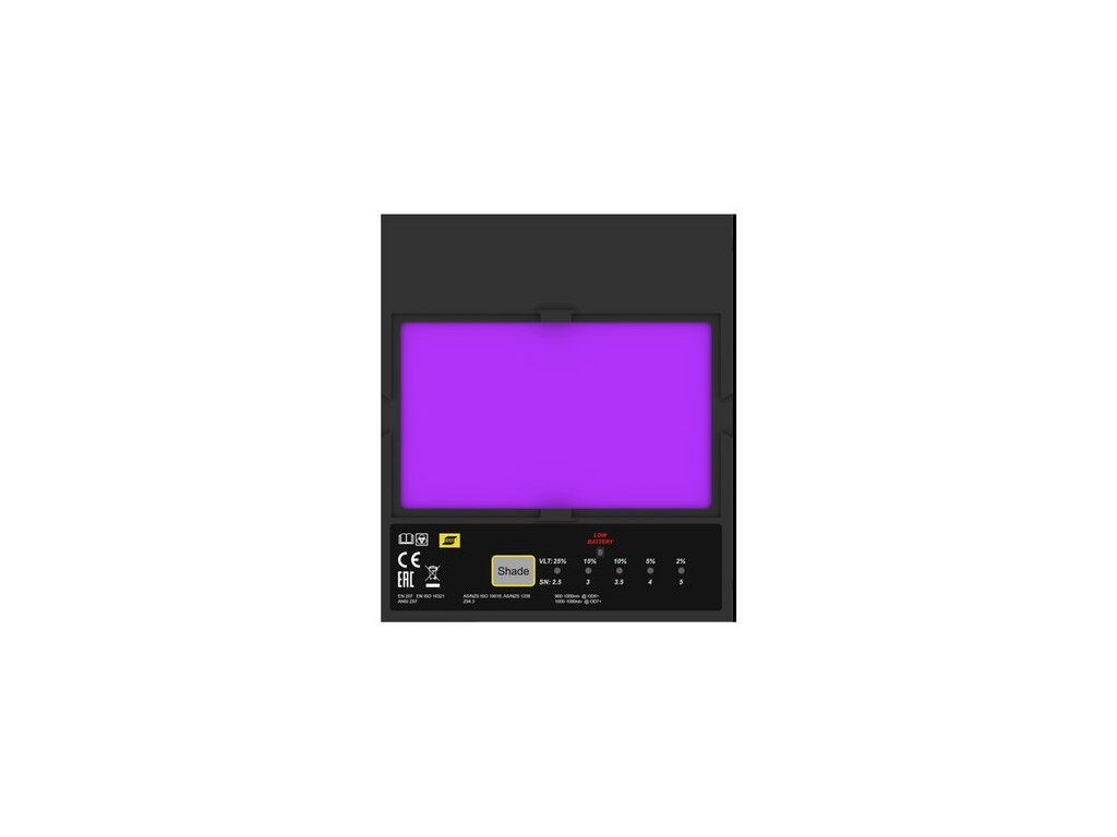- Díky pěti nastavitelným úrovním ztmavení (2,5–5) a velkému zornému poli o rozměrech 100 × 60 mm (3,94 × 2,36 palce) budete dobře a pohodlně vidět na každou práci